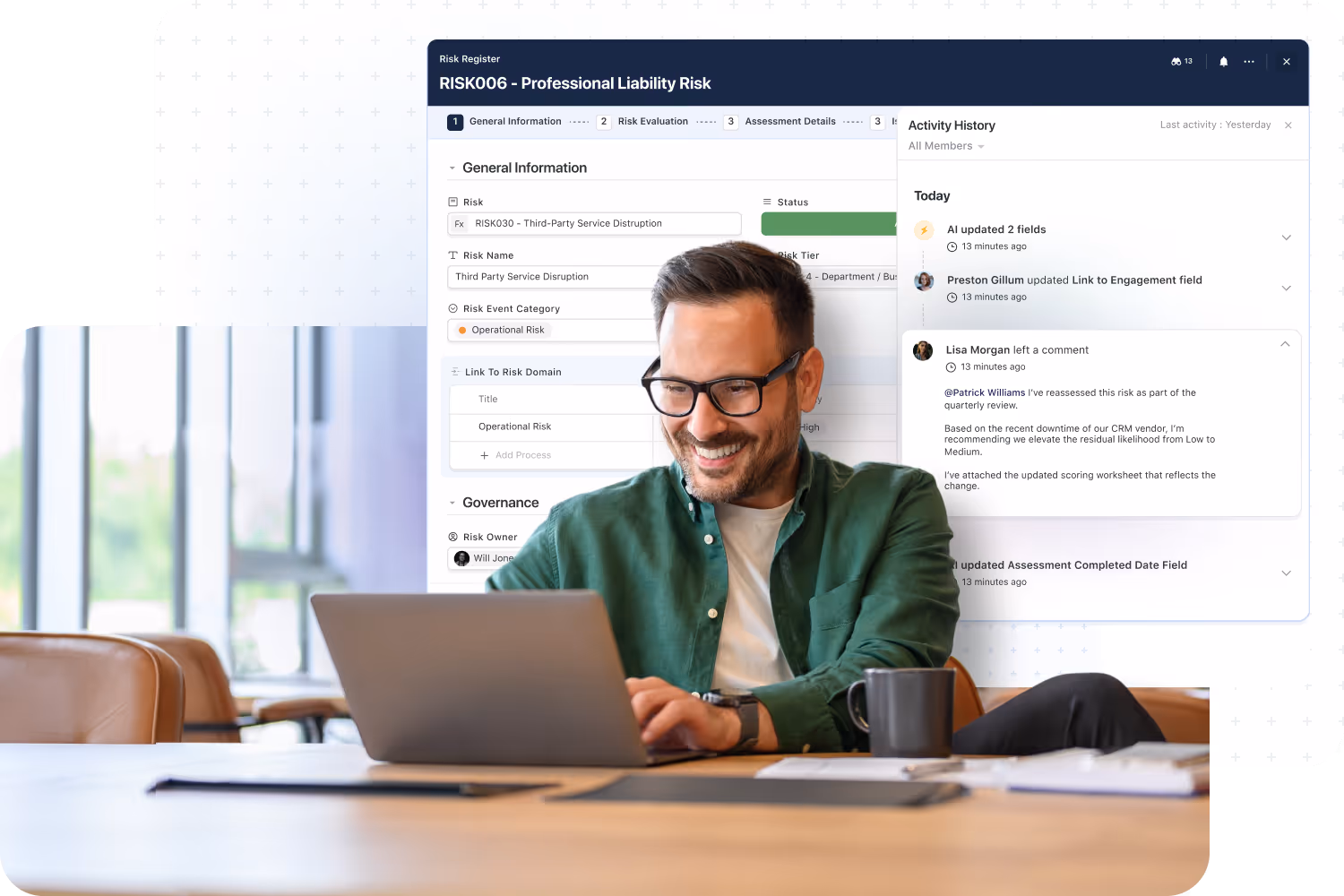 Unify risk, compliance, audit, third-party risk, operational resilience, business continuity, regulatory readiness, privacy, AI governance and ESG.