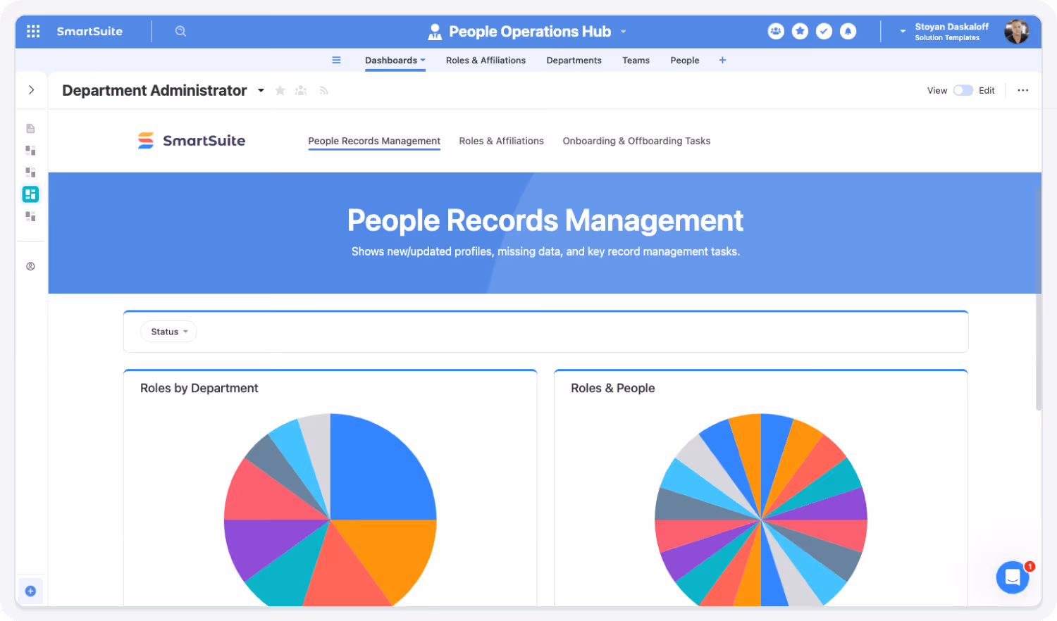SmartSuite centralizes hiring, onboarding, performance, engagement, people data, and workflow automation — giving HR teams one connected platform to streamline operations, improve employee experiences, and support organizational growth.