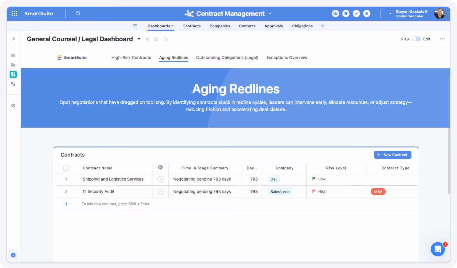 SmartSuite brings enterprise-grade legal operations with consumer-grade usability. Choose the rollout path that fits your team today—and expand as contract volume, review complexity, and governance needs grow.