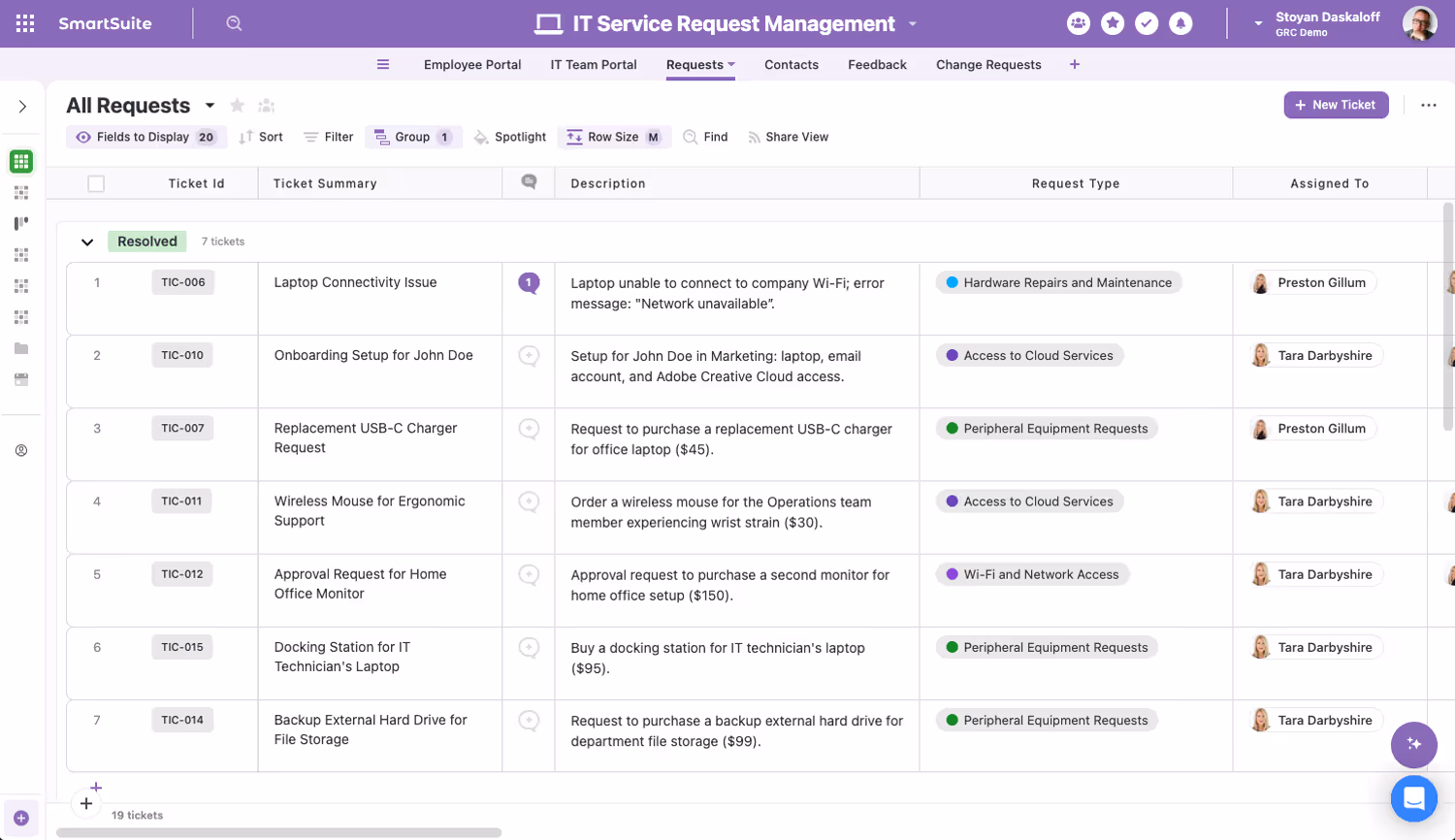 SmartSuite unifies IT services, operations, and asset management in one platform—eliminating silos and keeping work, risk, and governance aligned.
