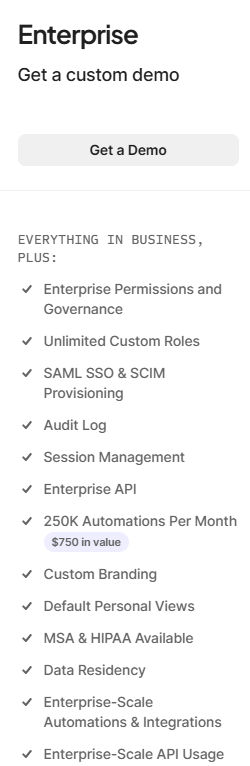 The enterprise plan offers the highest level of security, advanced integrations, and enhanced permission and control. For teams who want all this and have many seat requirements, talking to the sales team to get a custom quote would be the right choice.