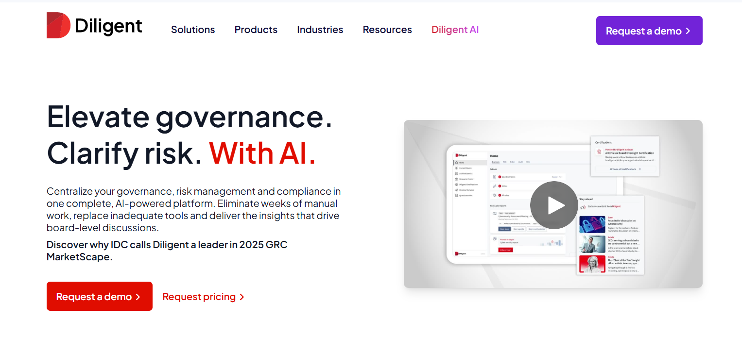 - Diligent - AI-powered GRC suite with strong capabilities in board governance, risk oversight, and policy management.