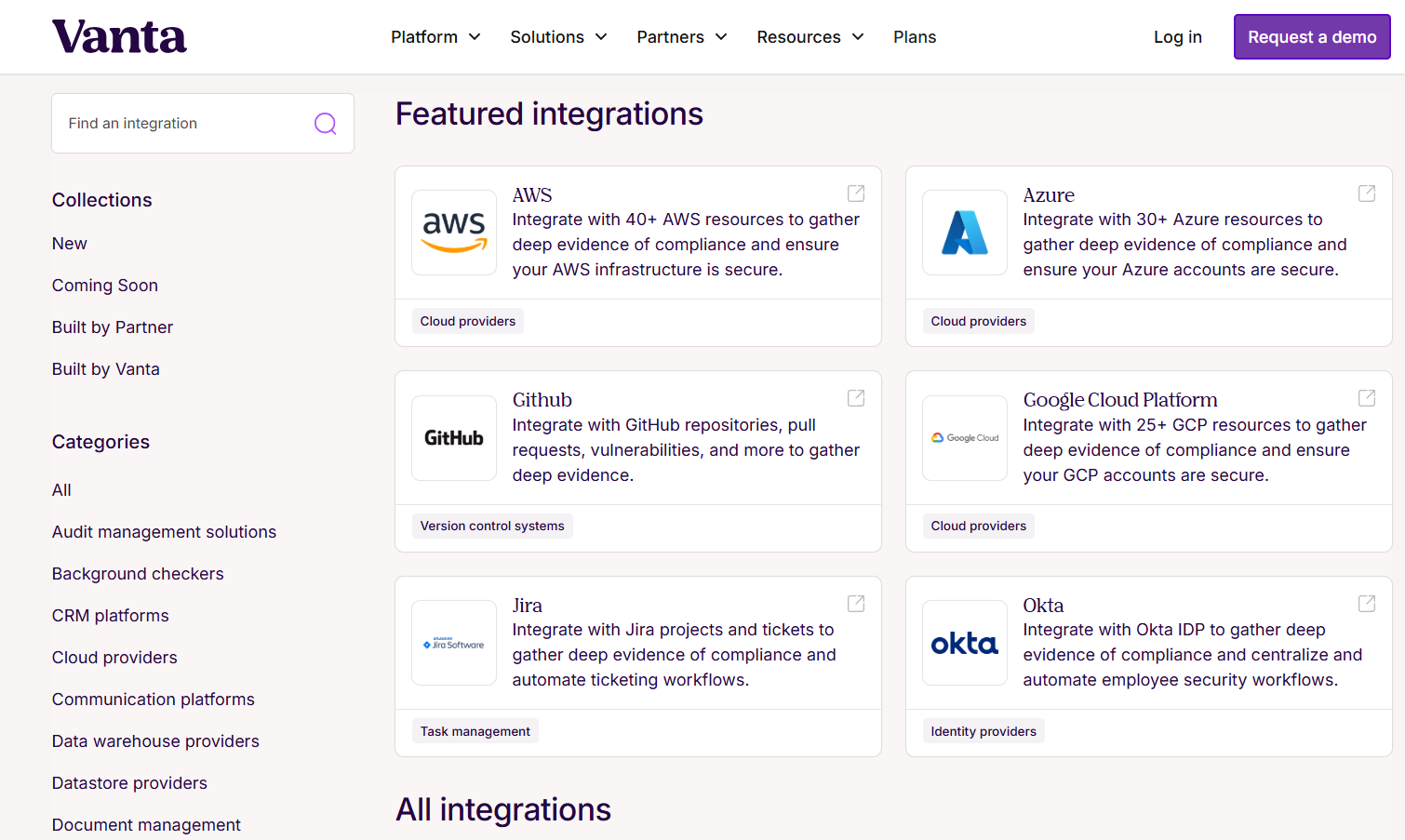 ✅ Are a small to mid-market company that needs a user-friendly interface and extensive integrations (Vanta supports ~300+ connectors).