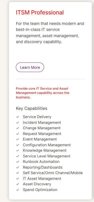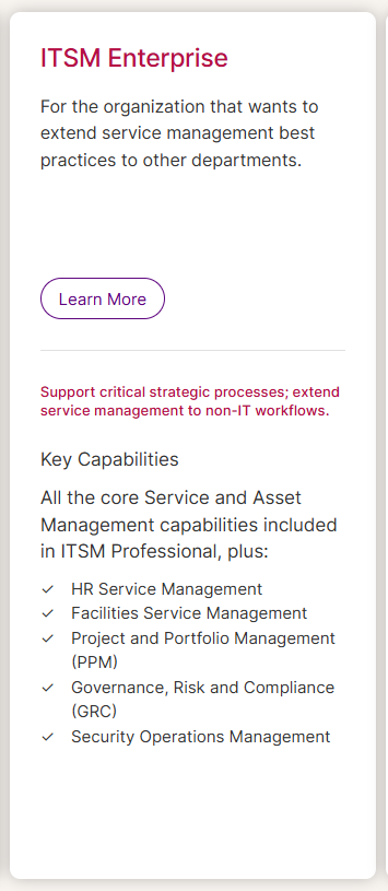 - ITSM Enterprise.