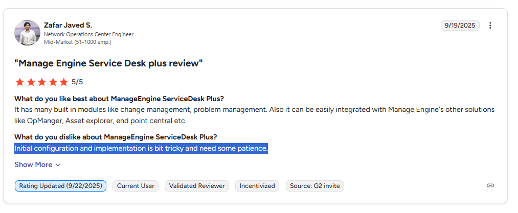 The #1 complaint of ManageEngine’s users has been around the tool’s implementation.
