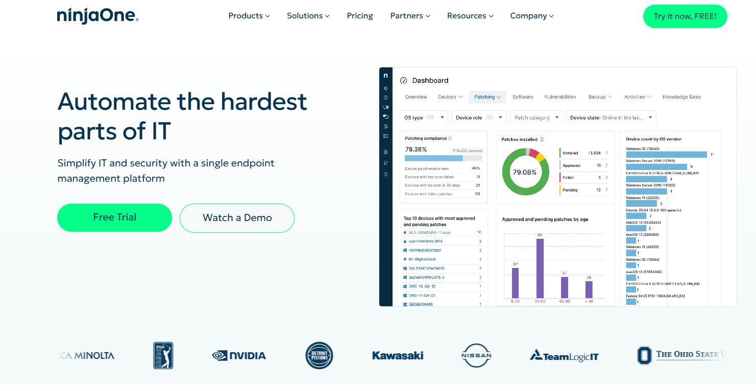 NinjaOne is a modern RMM platform that includes ticketing and endpoint management, making it a viable ManageEngine alternative when speed, simplicity and efficient remote management are the top priorities.