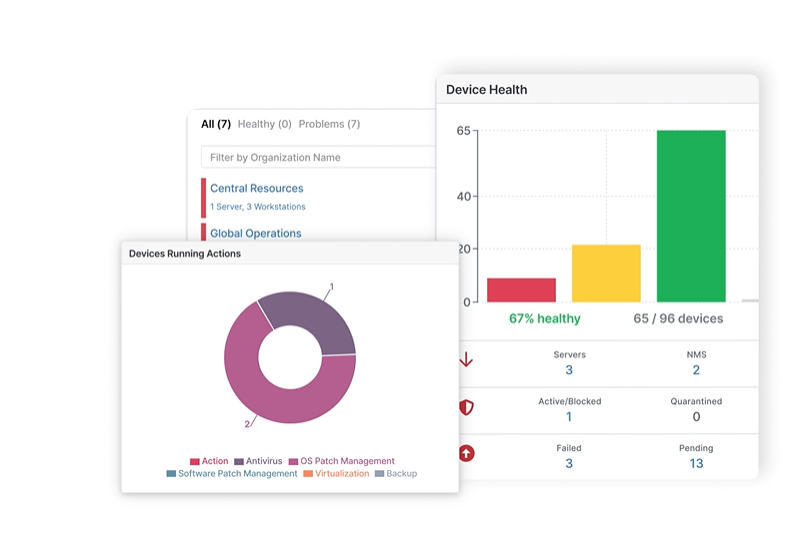 - Remote monitoring and alerting that provides real-time status of devices across Windows, macOS, and Linux, with smart notifications.