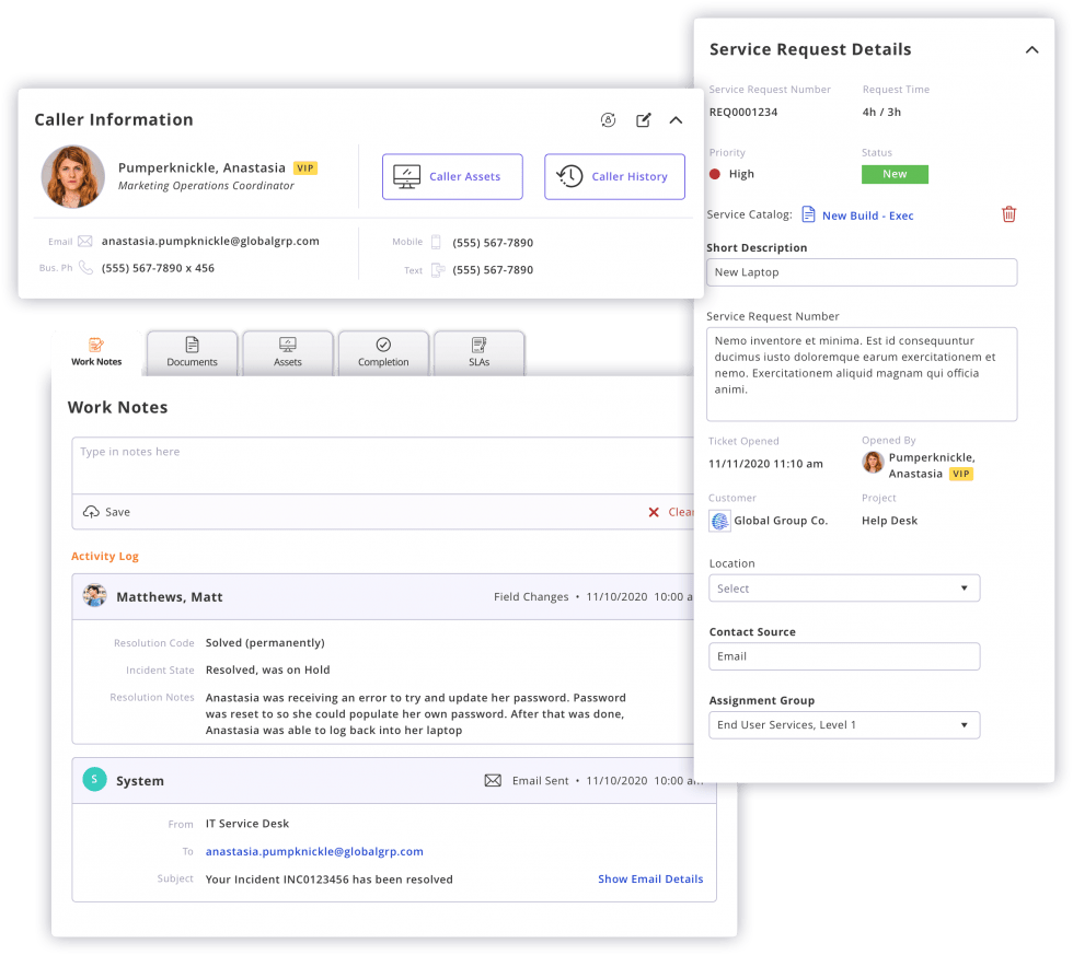 - Comprehensive ticketing system for tracking your organization’s incidents, service requests, and problems across multiple channels.