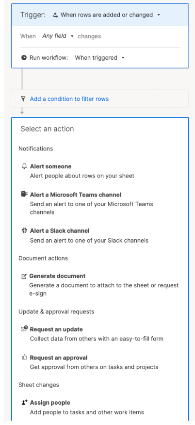 Smartsheet automation lets teams build no-code workflows using triggers, conditions, and actions to handle reminders, approvals, assignments, and status updates.