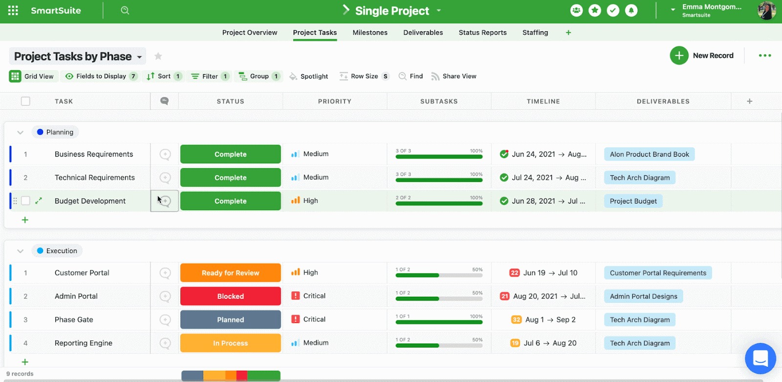 SmartSuite’s project management capabilities help you plan, track, and manage simple to complex projects.