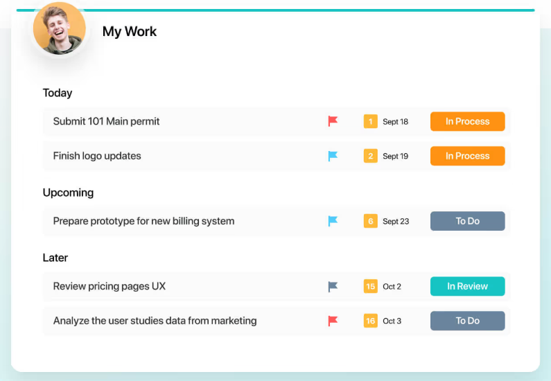 - One view for everything you own: The My Work view consolidates tasks across all projects into a single, prioritized list for each team member.