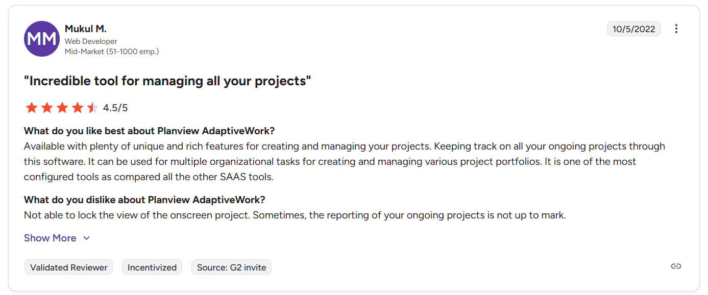 And that’s exactly why I included it here, as it sits squarely between Smartsheet’s spreadsheet-driven execution and Planview’s enterprise portfolio control.