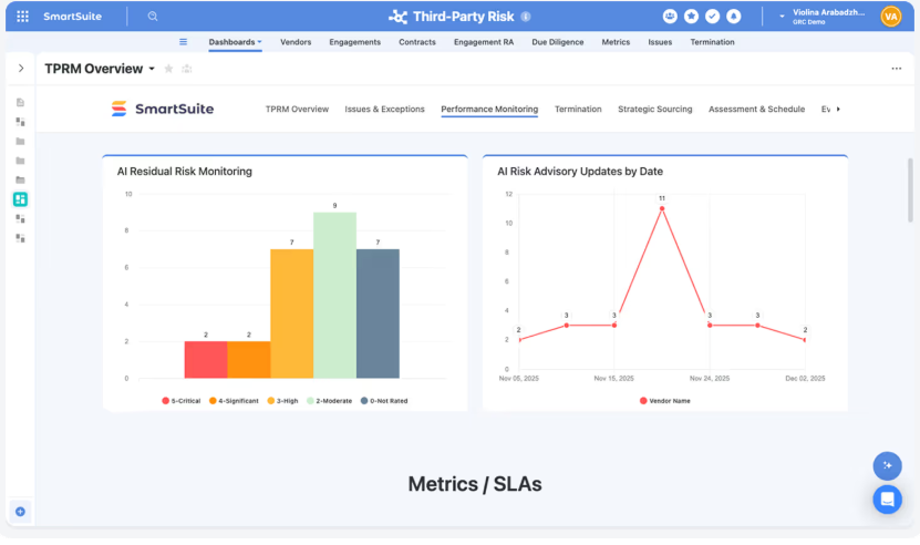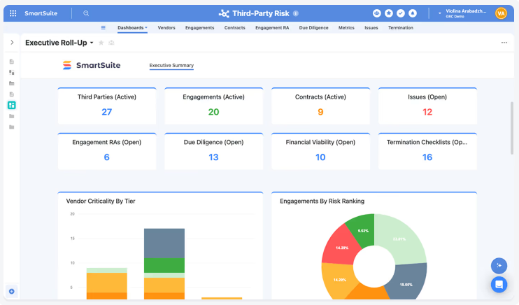 SmartSuite brings together relational data, automation, reporting, permissions, and AI into a single governed environment, helping organizations manage workflows across GRC, IT, projects, and business operations without relying on multiple disconnected tools.