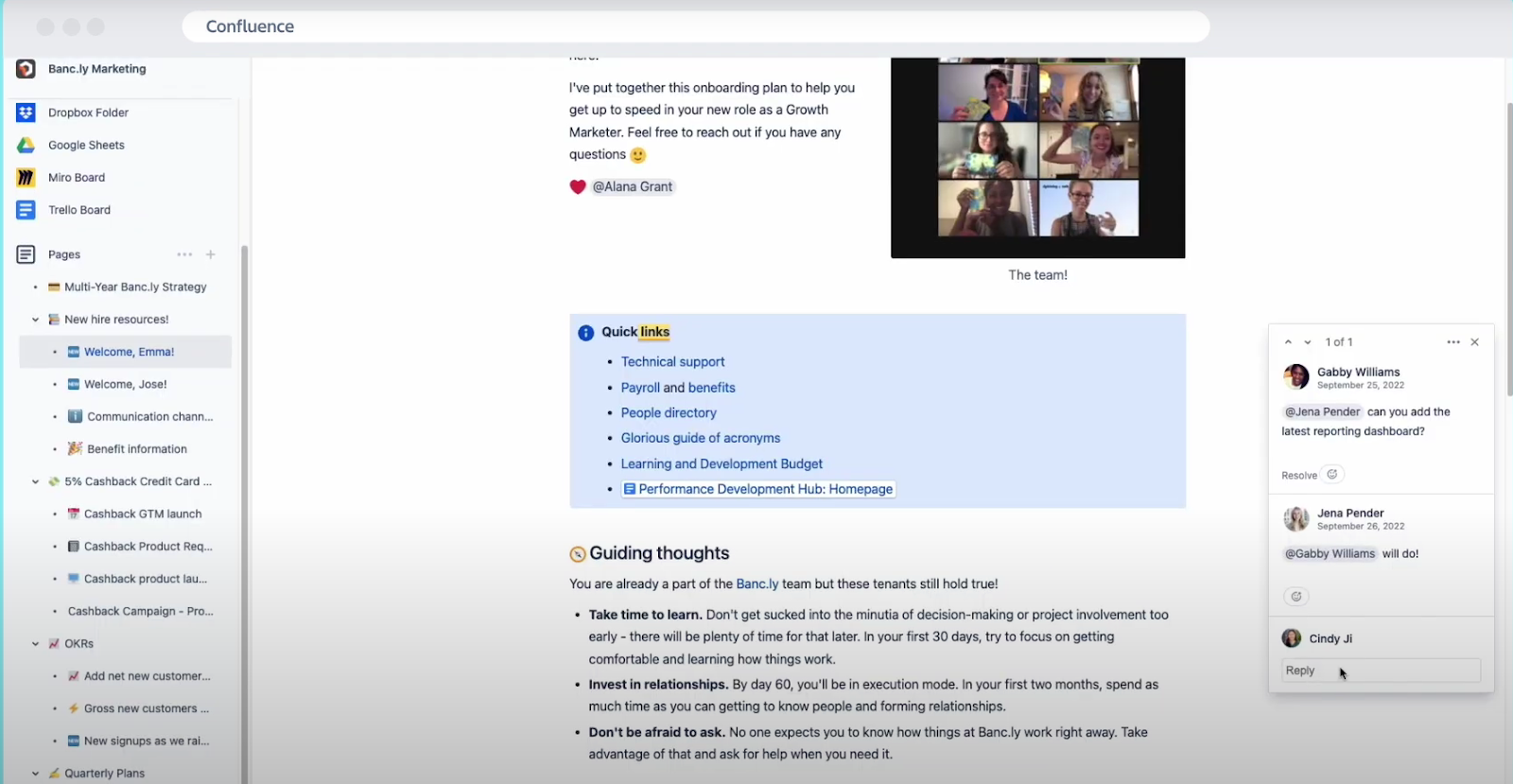 - Real-time collaboration, including inline comments, mentions, and simultaneous editing help teams work together more transparently without losing context.