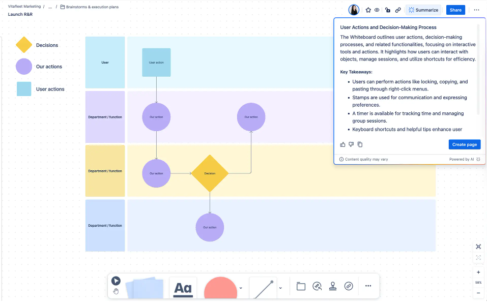 Confluence also includes built-in whiteboards that give teams a flexible space for visual thinking, planning, and early-stage ideation.