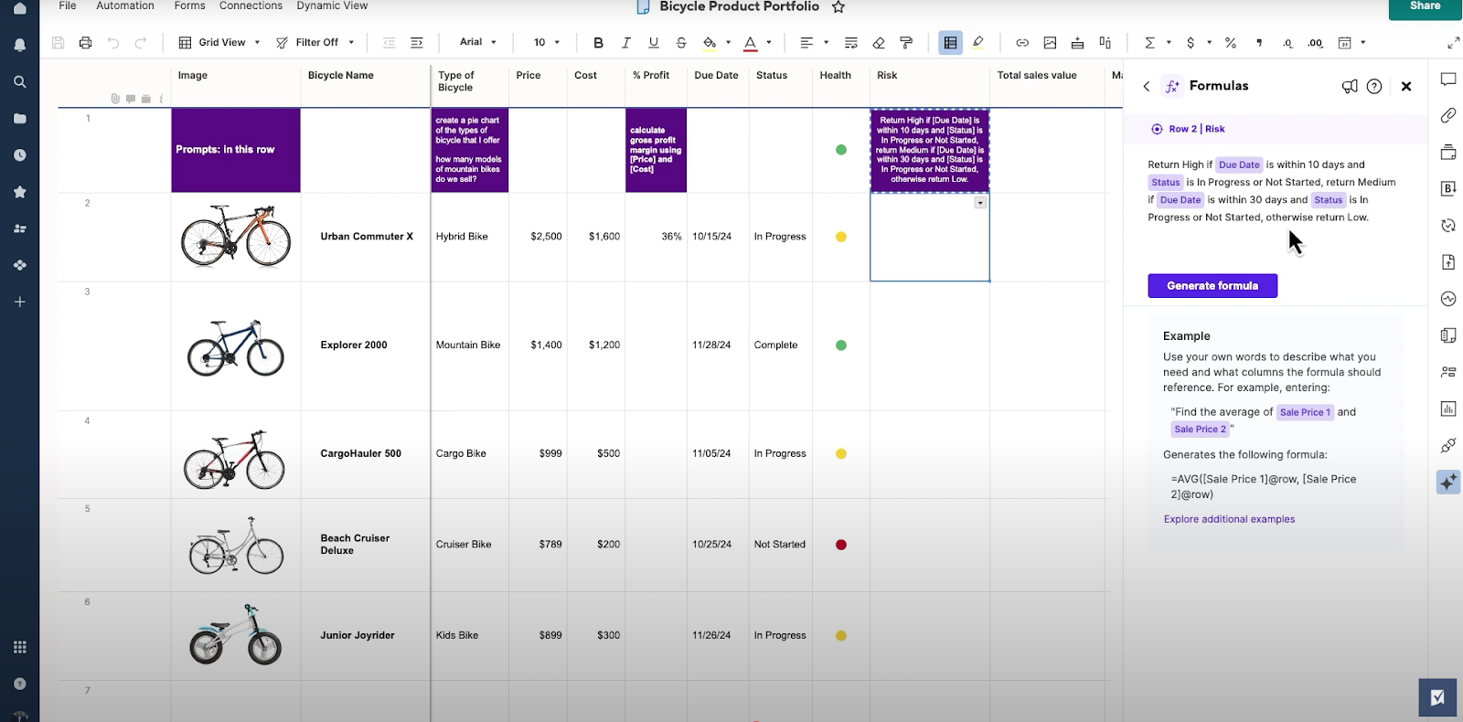 Smartsheet AI helps teams work faster by generating formulas, analyzing data, summarizing updates, and suggesting clearer on-brand descriptions for your assets directly inside the platform.