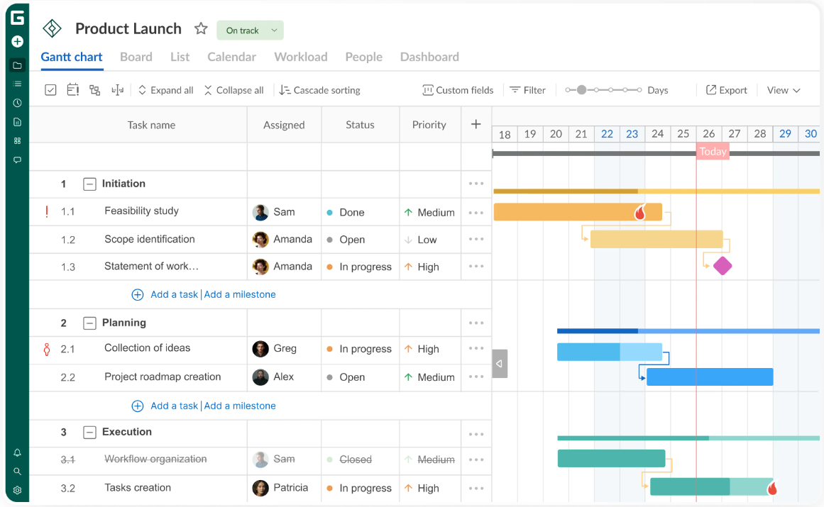 - GanttPRO is built around visual timelines, making it ideal for planning projects with clear deadlines, dependencies, and resource allocation. Its Gantt-first approach keeps scheduling simple and focused, but it may feel limiting for teams that need broader workflow or operational management beyond timelines.