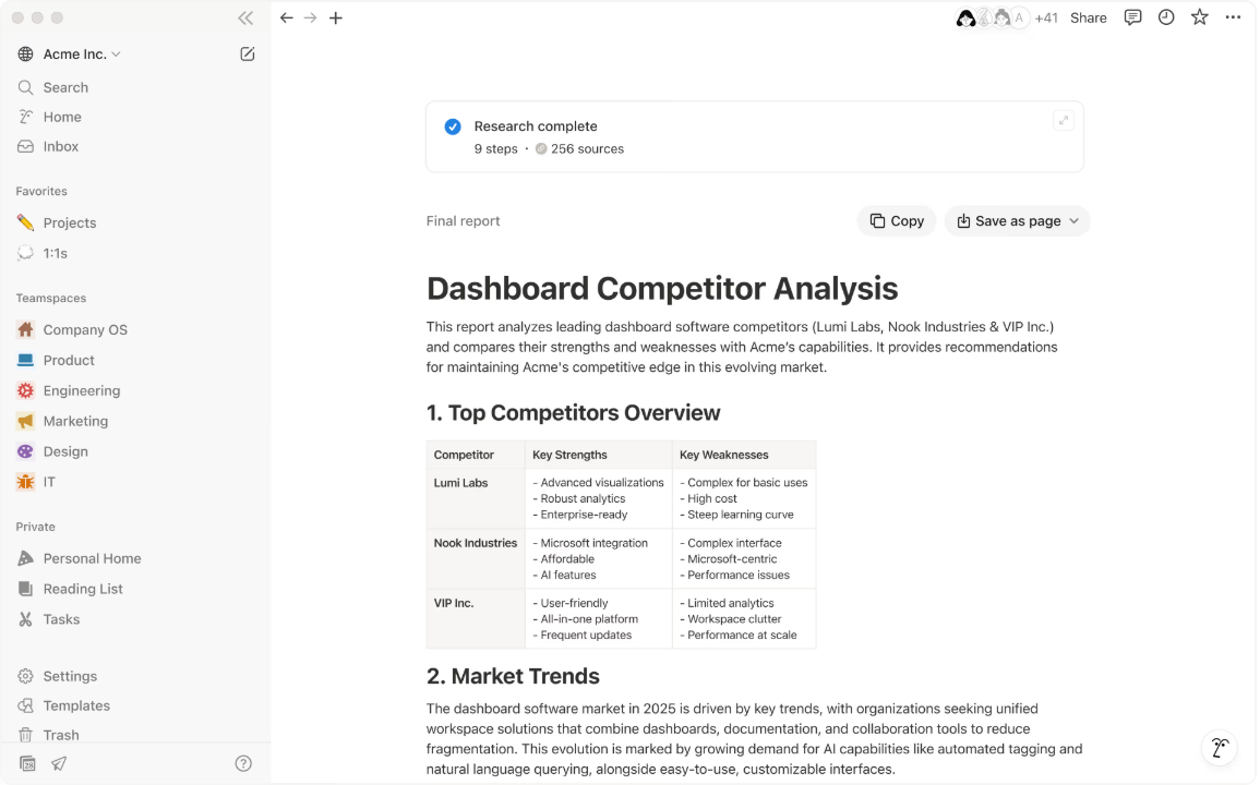 - Extreme flexibility, allowing teams to build custom workspaces that combine docs, wikis, databases, and tasks in one place.