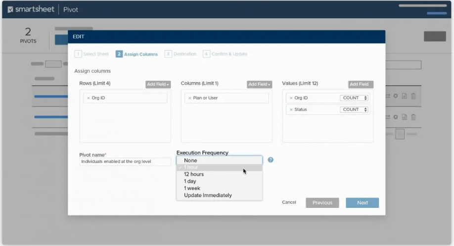 DataTable and the Pivot App allow teams to visualize, summarize, and analyze large datasets pulled from ERPs, CRMs, and databases directly inside Smartsheet.