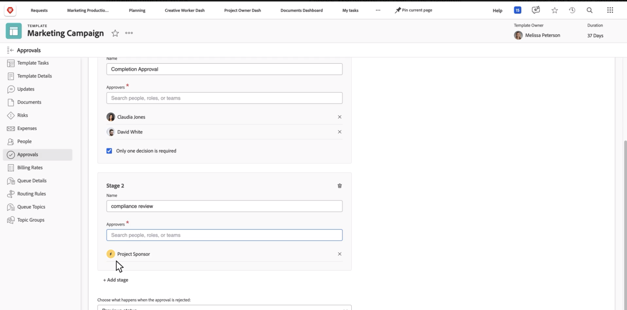 Teams can use project templates and blueprints to quickly spin up consistent projects, workflows, and permissions for common use cases like campaign launches, creative production, or service delivery.