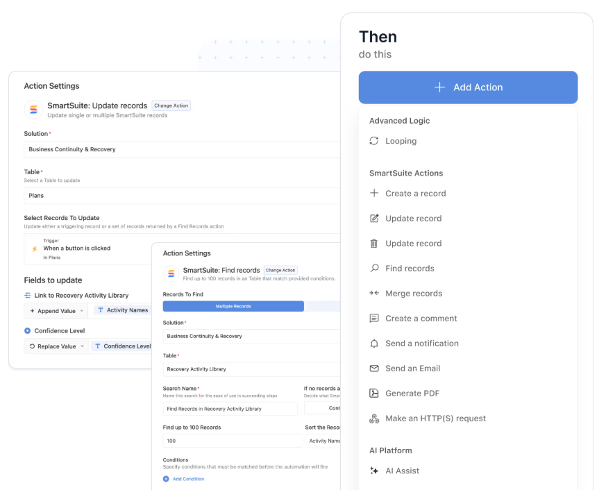 Instead of relying on scripts, formulas, or enterprise-level configuration, SmartSuite uses clear, no-code rules that are easy to build, understand, and adjust as processes evolve.