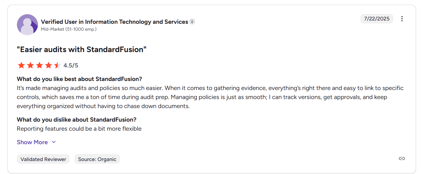 Many StandardFusion users note that while it supports structured workflows, automation can feel limited or manual, especially as programs scale.