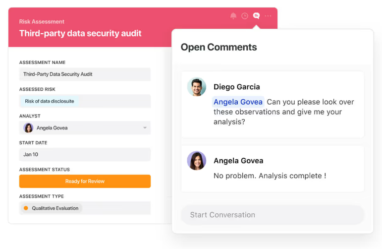 - Collaborate where the work happens: Comments, @mentions, real-time notifications, and activity history keep the entire team aligned and in the loop at all times.