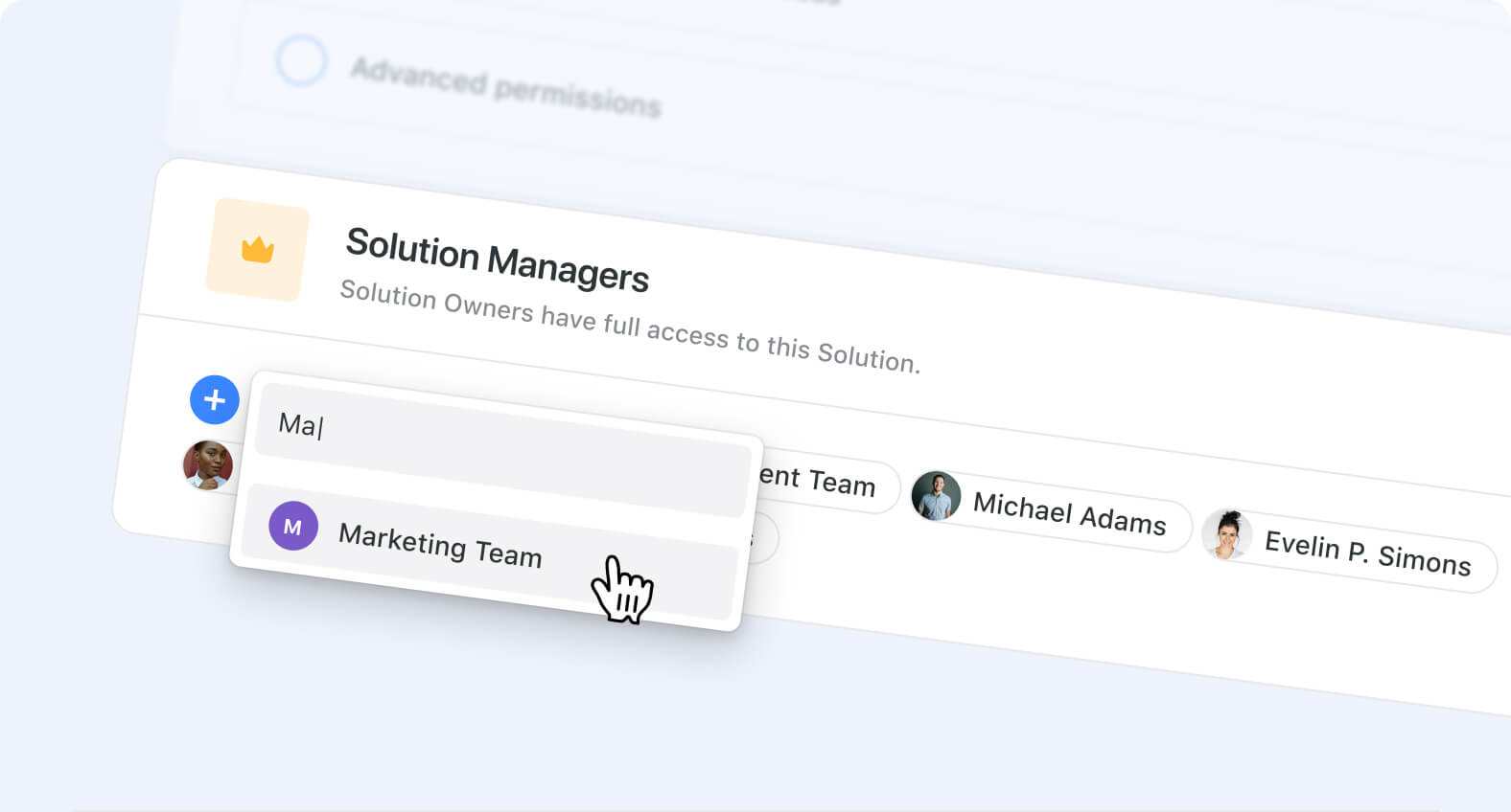 We’re introducing support for assigning Solution Manager permissions to entire Teams in SmartSuite.