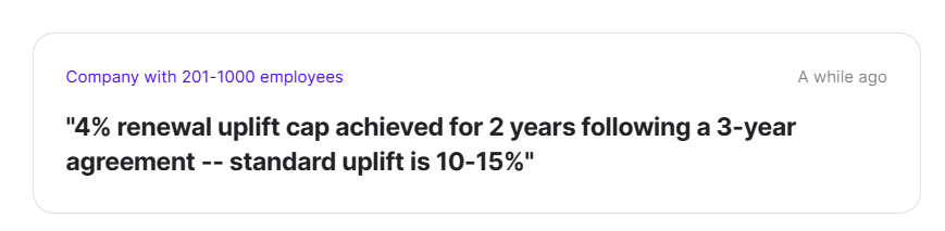Another reviewer on Vendr claims that they were facing a 5% renewal uplift, but were able to negotiate it down to 2% and then lock in their price for the duration of their 36-month contract.