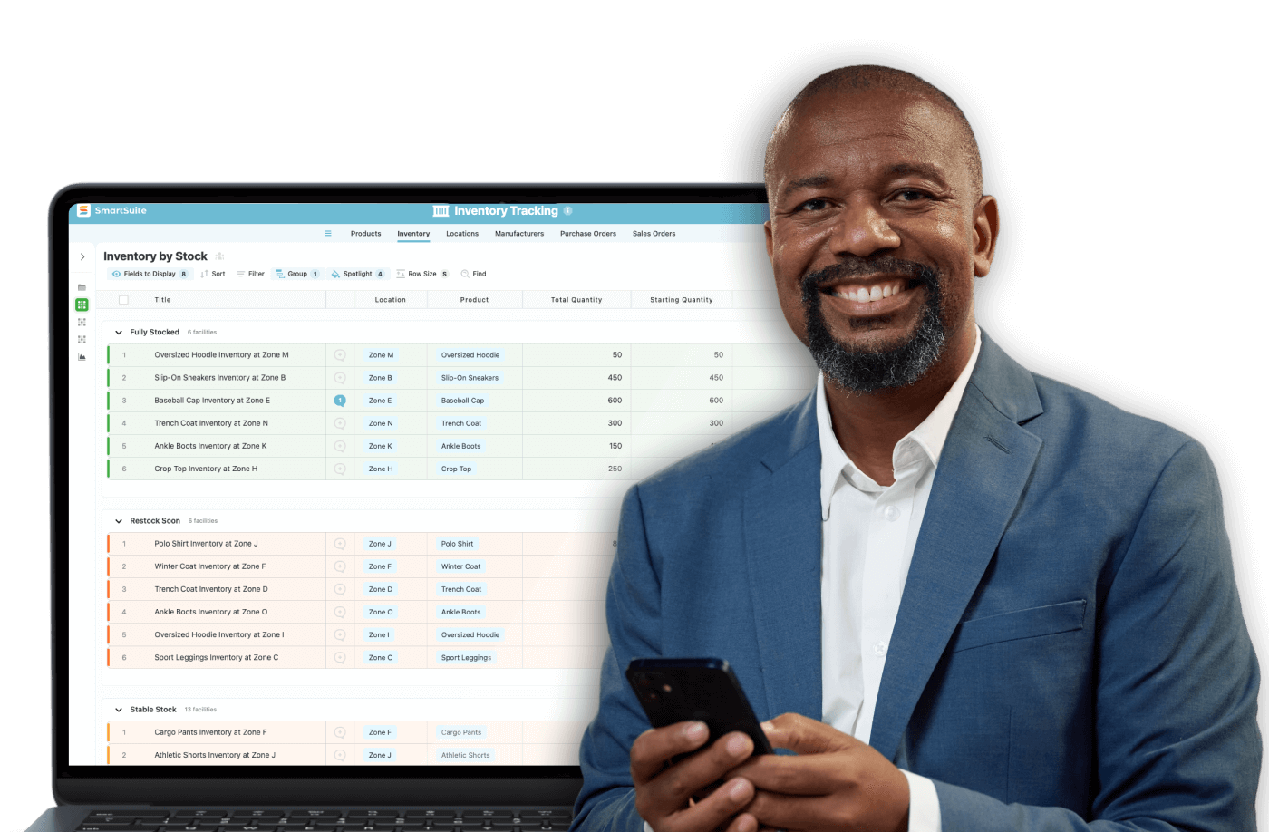 SmartSuite enhances warehouse optimization by unifying inventory tracking, order workflows, labor coordination, and performance analytics into a single, customizable platform.
