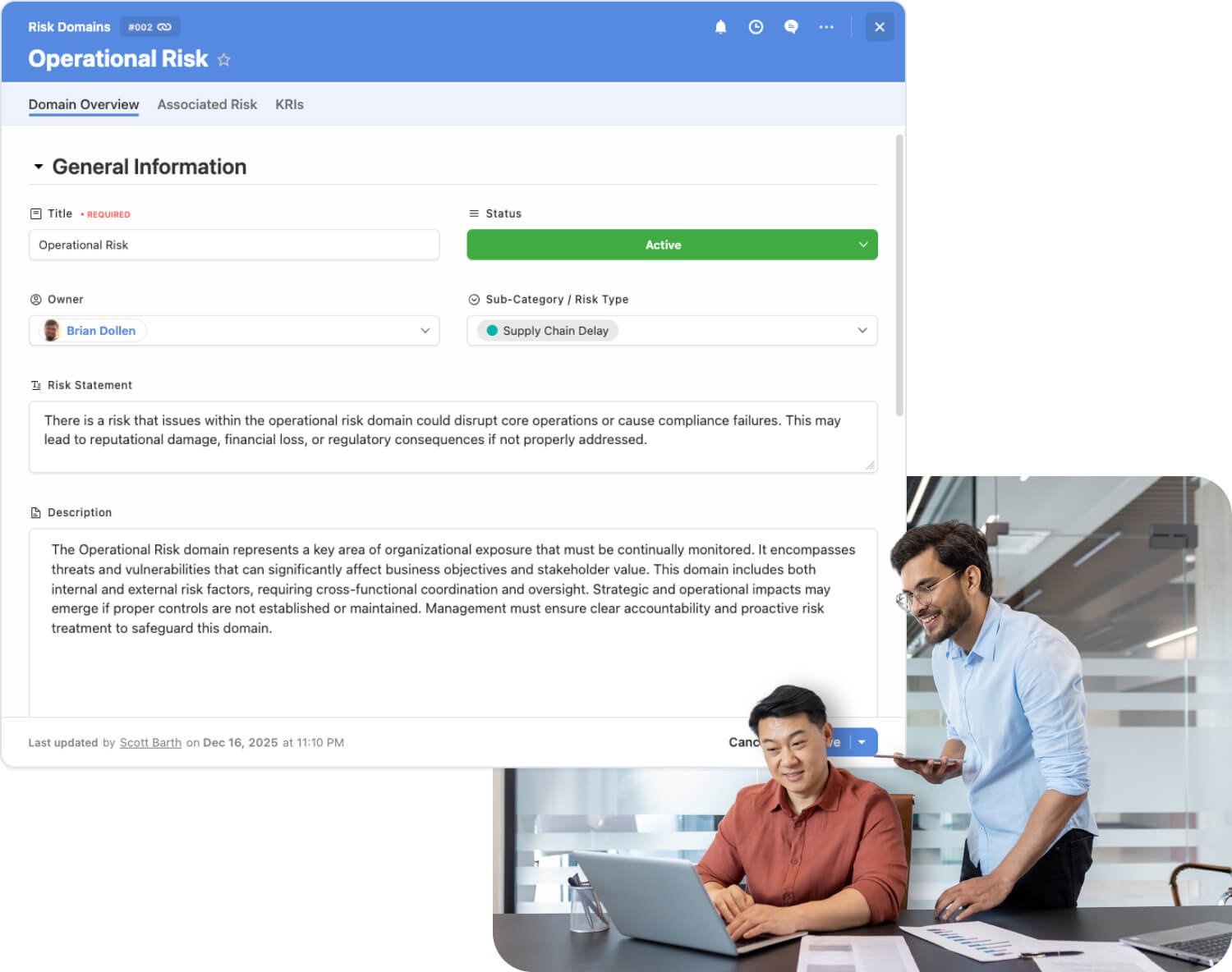 - Link incidents directly to risk assessments and mitigation plans