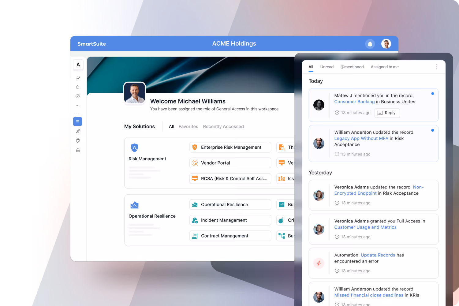 SmartSuite replaces that fragmentation with one connected enterprise platform. It gives organizations a consistent way to design, govern, automate, and scale workflows—so teams can move faster, data stays connected, and the business gains a stronger foundation for control, visibility, and continuous improvement.