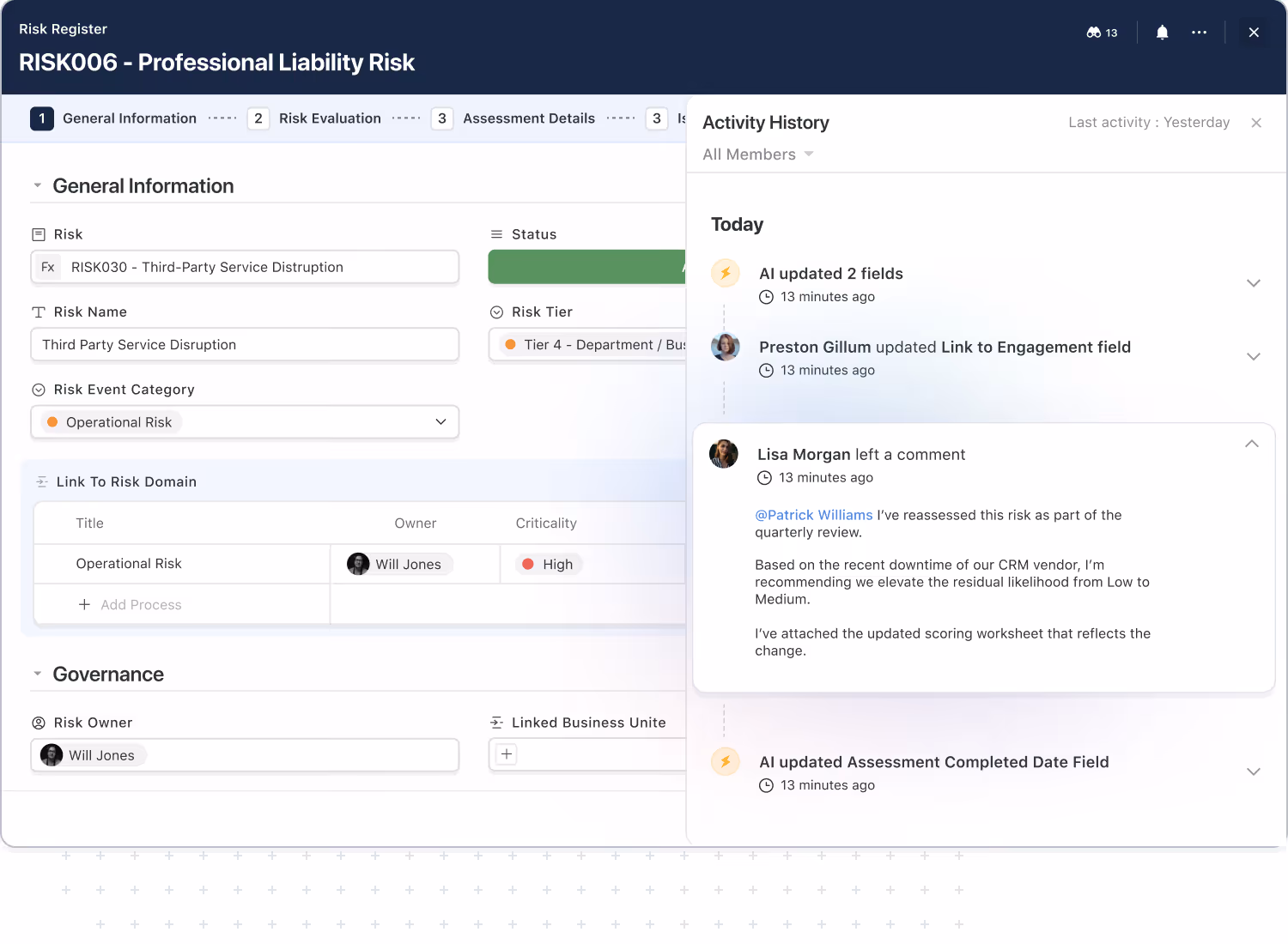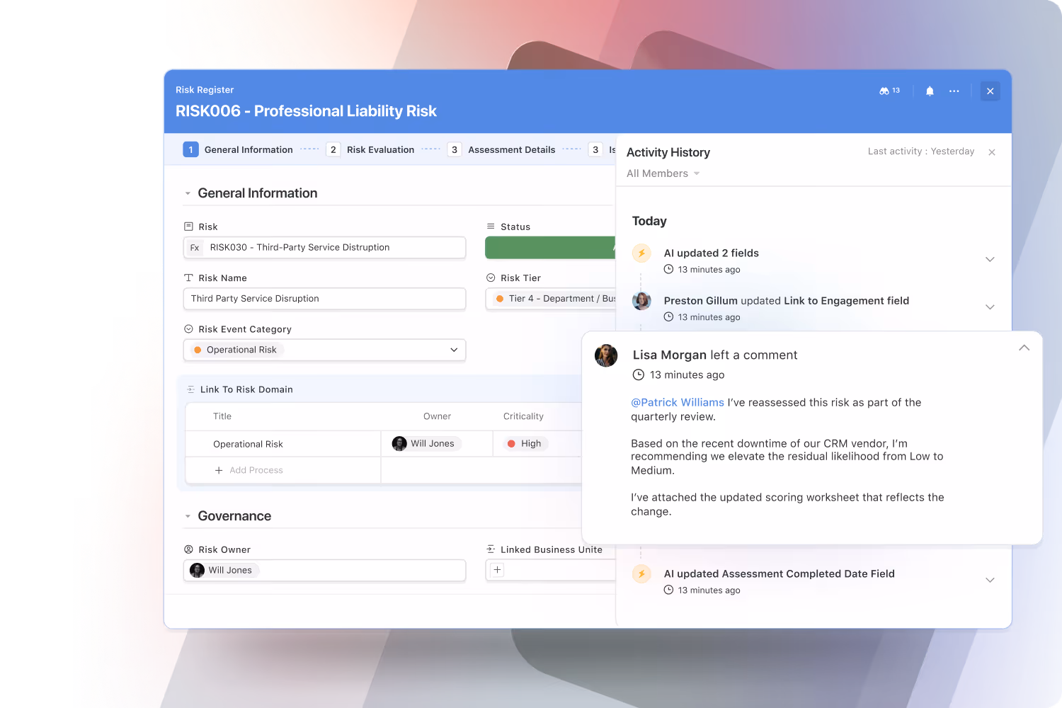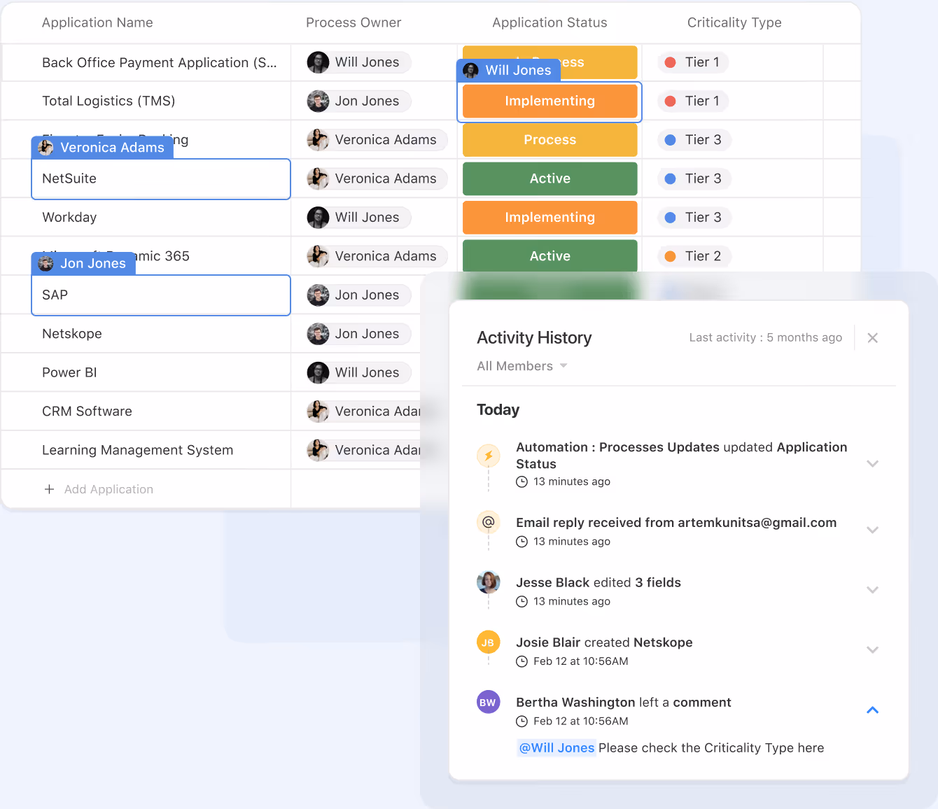 Assign work, manage handoffs, and collaborate directly within your workflow records.