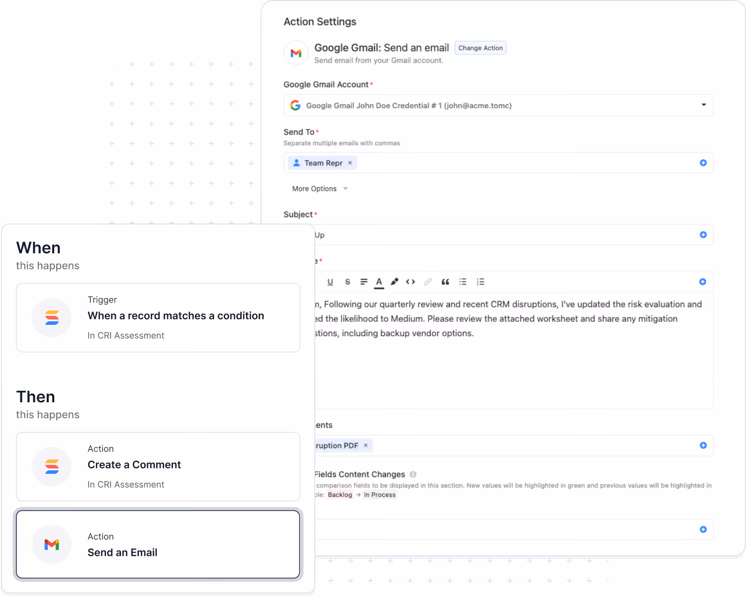 Streamline work with triggers, conditions, and multi-step actions that eliminate manual effort and orchestrate end-to-end processes.