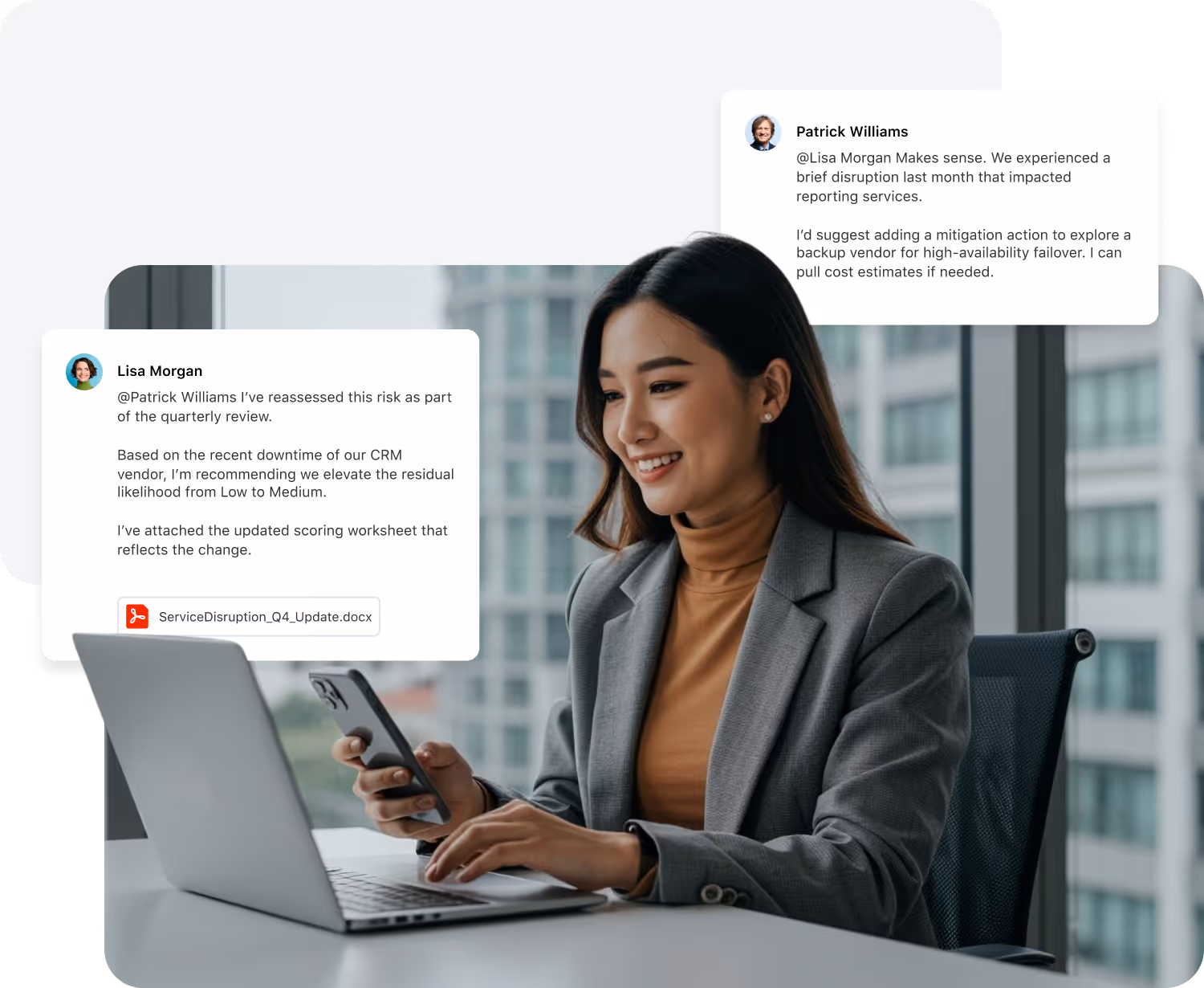 Secure collaboration is a core capability of the platform. Teams communicate, share context, and make decisions directly within the workflows where work happens — reducing the noise of scattered tools.