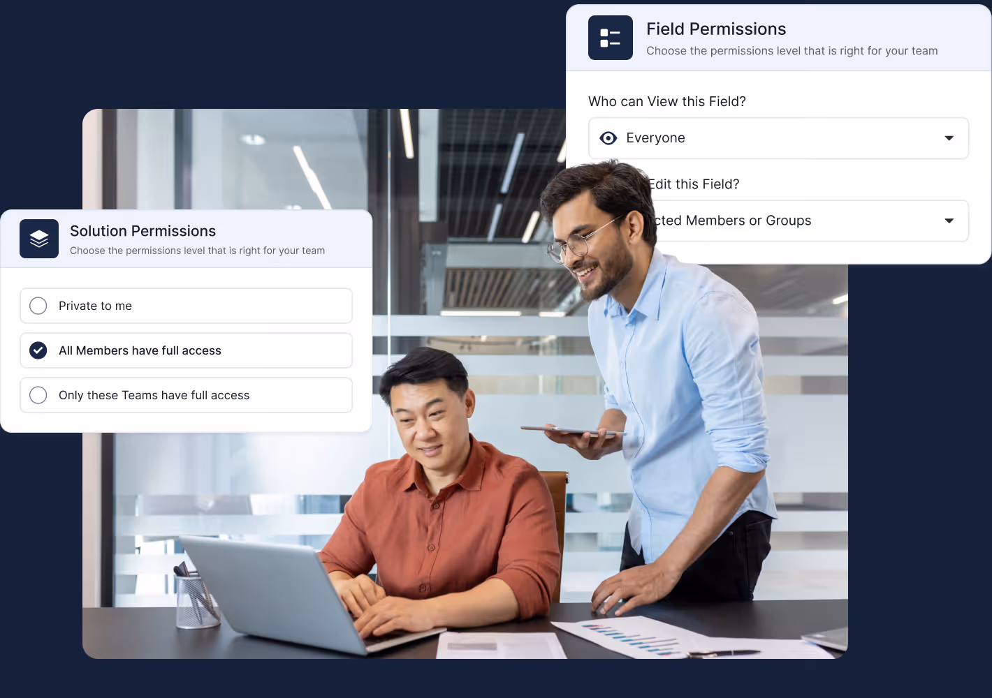Field-level permissions let you control who can view or edit individual fields. Sensitive formulas, compensation data, security notes, or internal-only comments can be hidden from non-authorized users while keeping the workflow intact.
