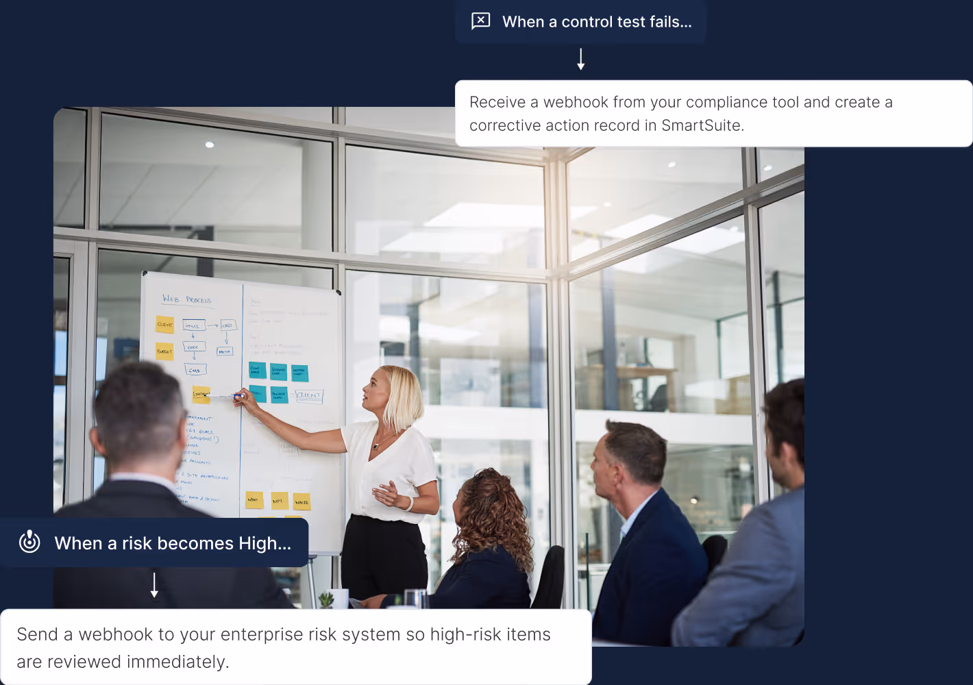 Our engine handles simple record updates and multi‑step processes that trigger events inside and outside of SmartSuite. It provides a structured, consistent approach that reduces reliance on custom development while empowering teams to automate with confidence.