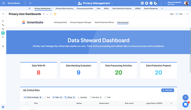 SmartSuite delivers a complete GRC suite that connects privacy, risk, compliance, and data governance in one platform.