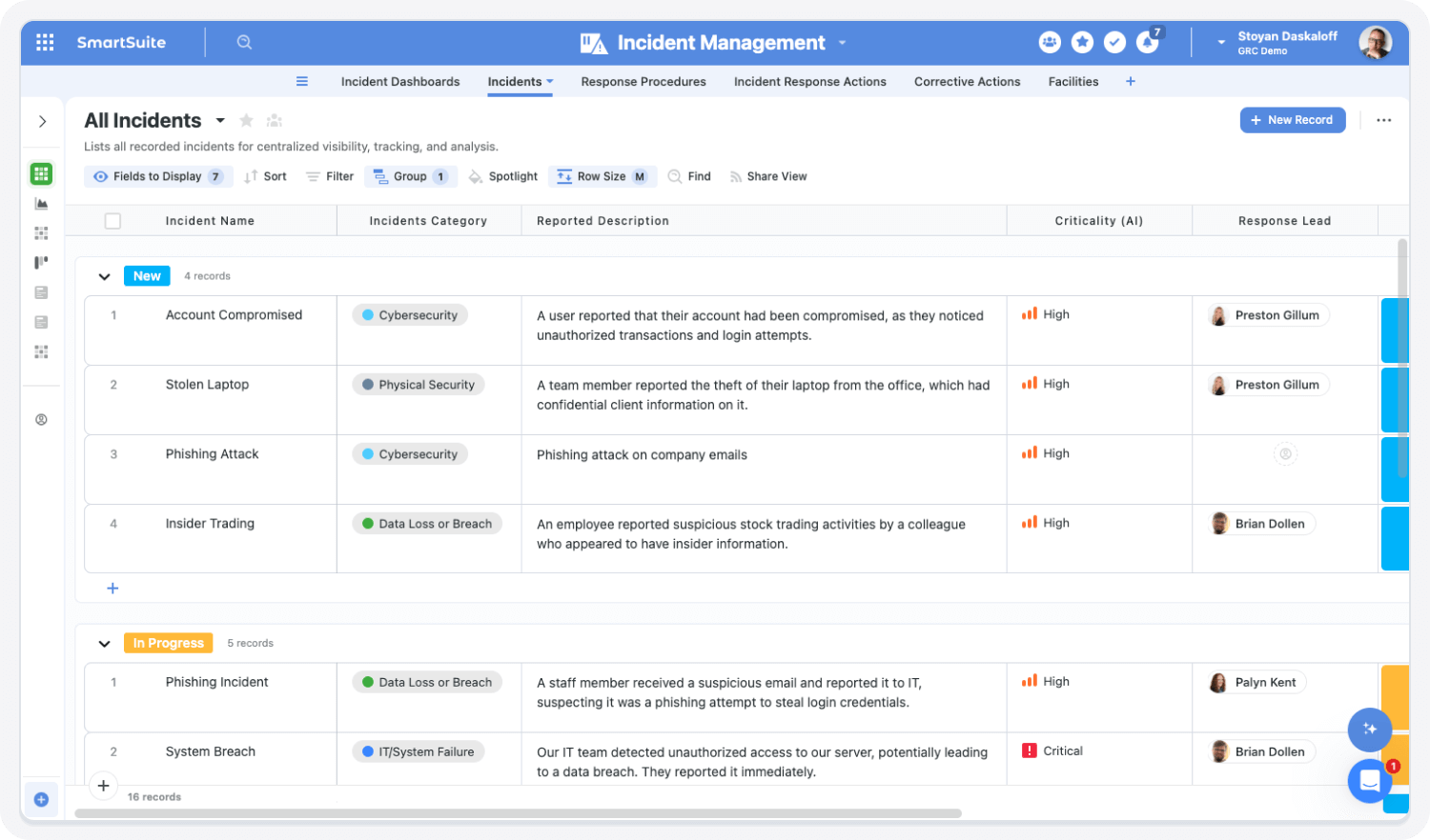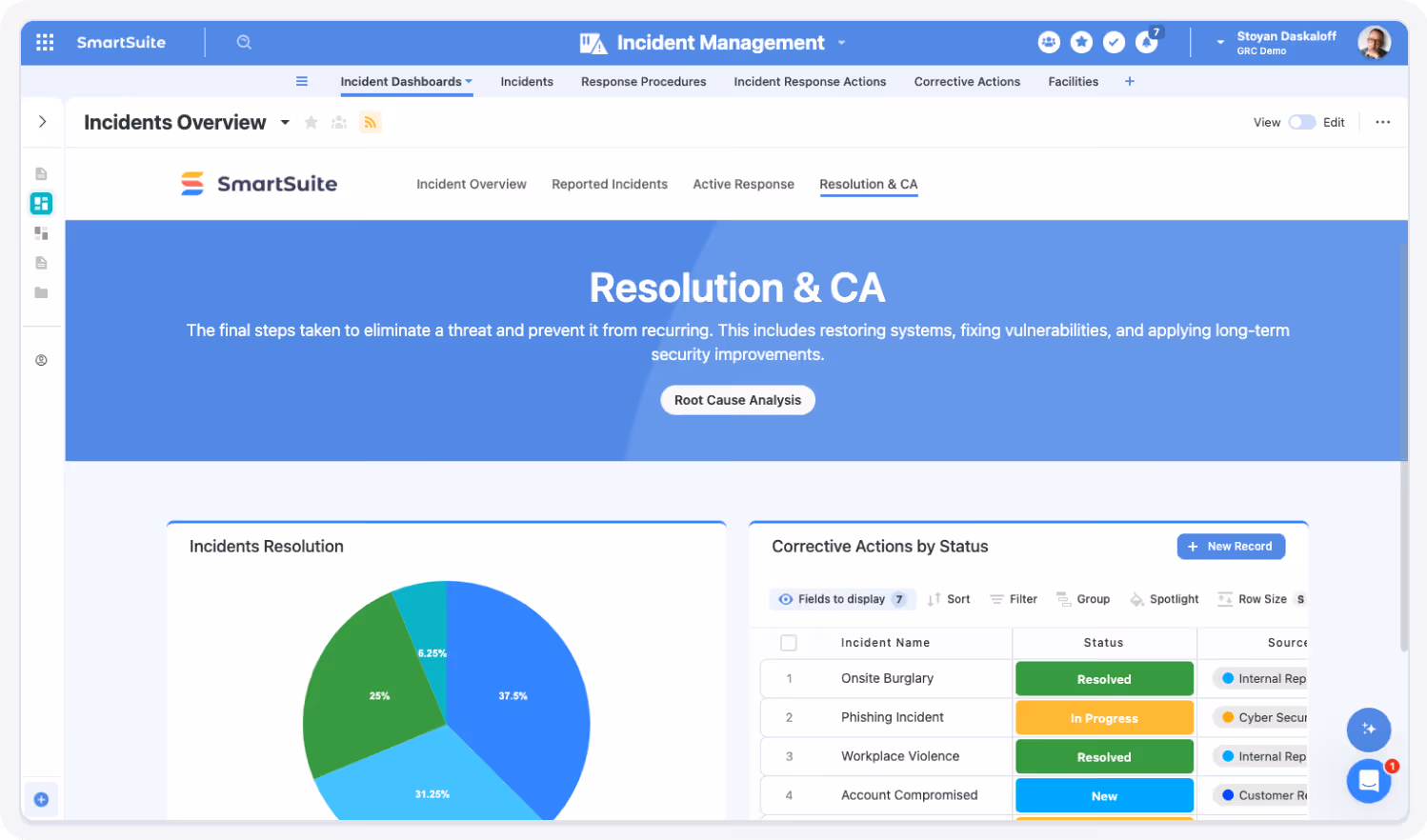 SmartSuite connects schedules, crews, inspections, issues, and jobsite updates in one integrated platform — enabling real-time visibility and reducing operational friction.