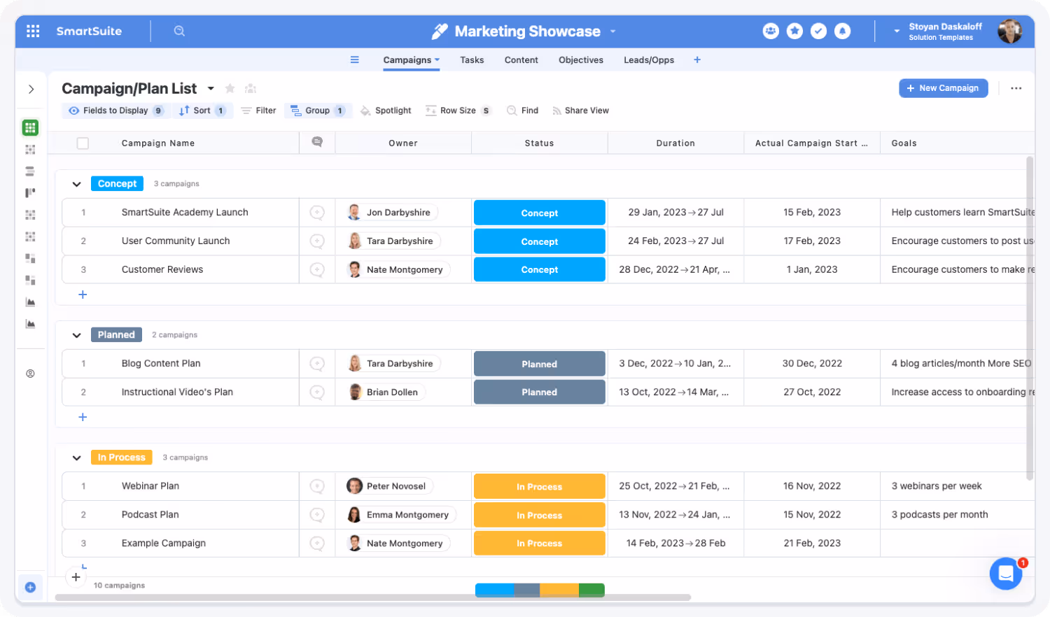 Modern GTM teams need connected systems, coordinated workflows, and shared visibility across Sales, Marketing, and RevOps. SmartSuite unifies CRM, lead management, campaign operations, approvals, and launch planning — creating a single GTM engine that drives predictable growth.