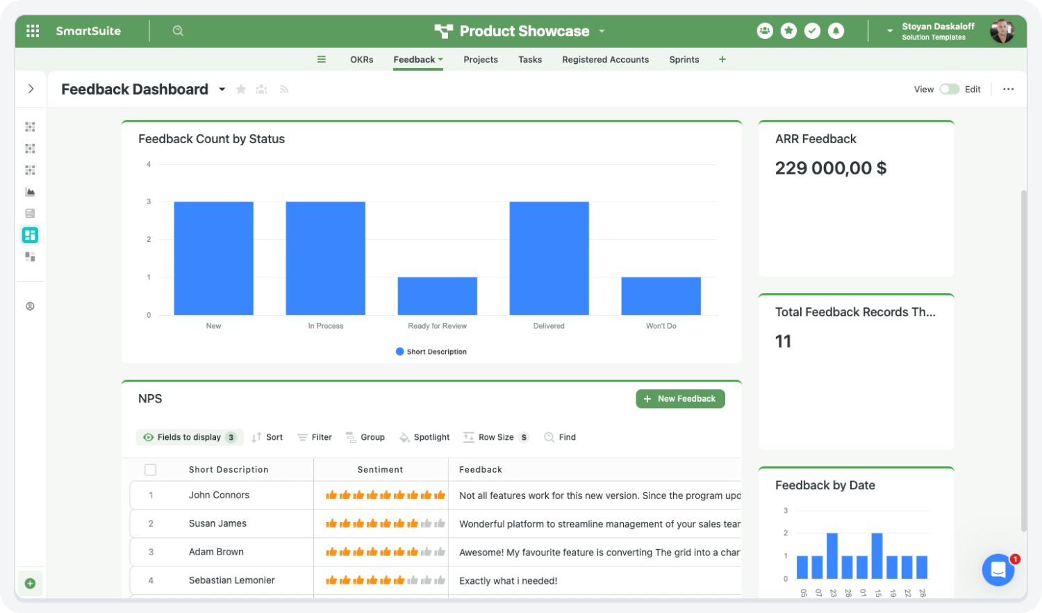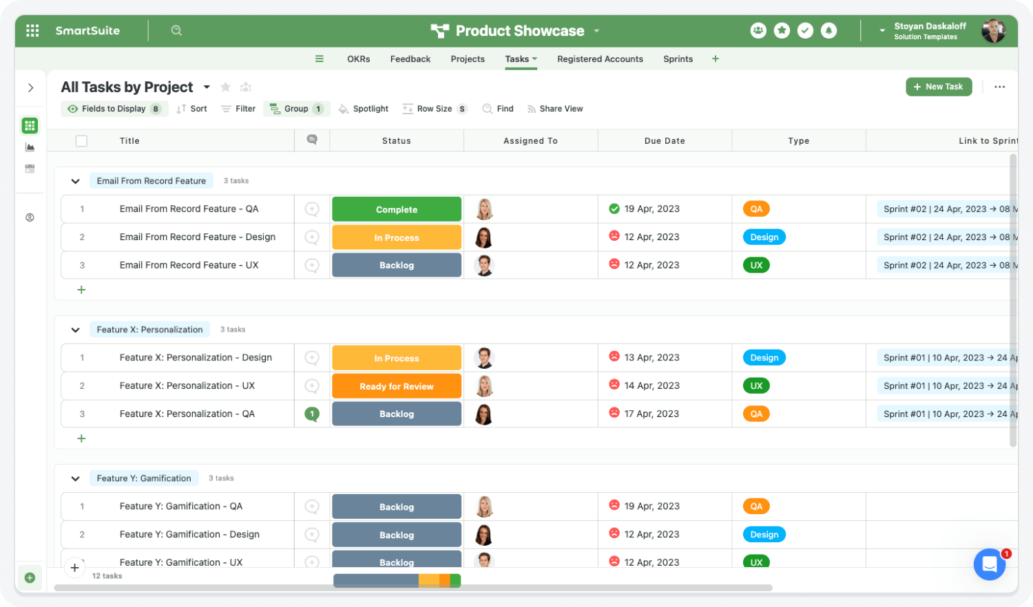 SmartSuite helps teams collaborate seamlessly, track progress in real time, and align every feature and release with business objectives.