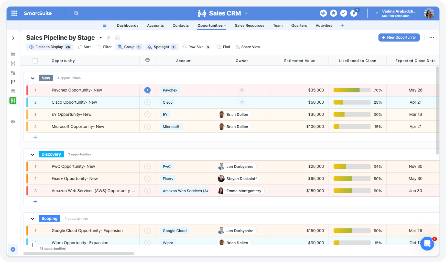 Ensure every opportunity has clear ownership and accountability.