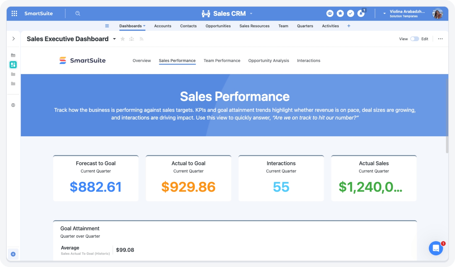 SmartSuite Sales Operations connects CRM, quoting, proposals, and account management into a single system that ensures consistent execution and full visibility across the sales lifecycle.