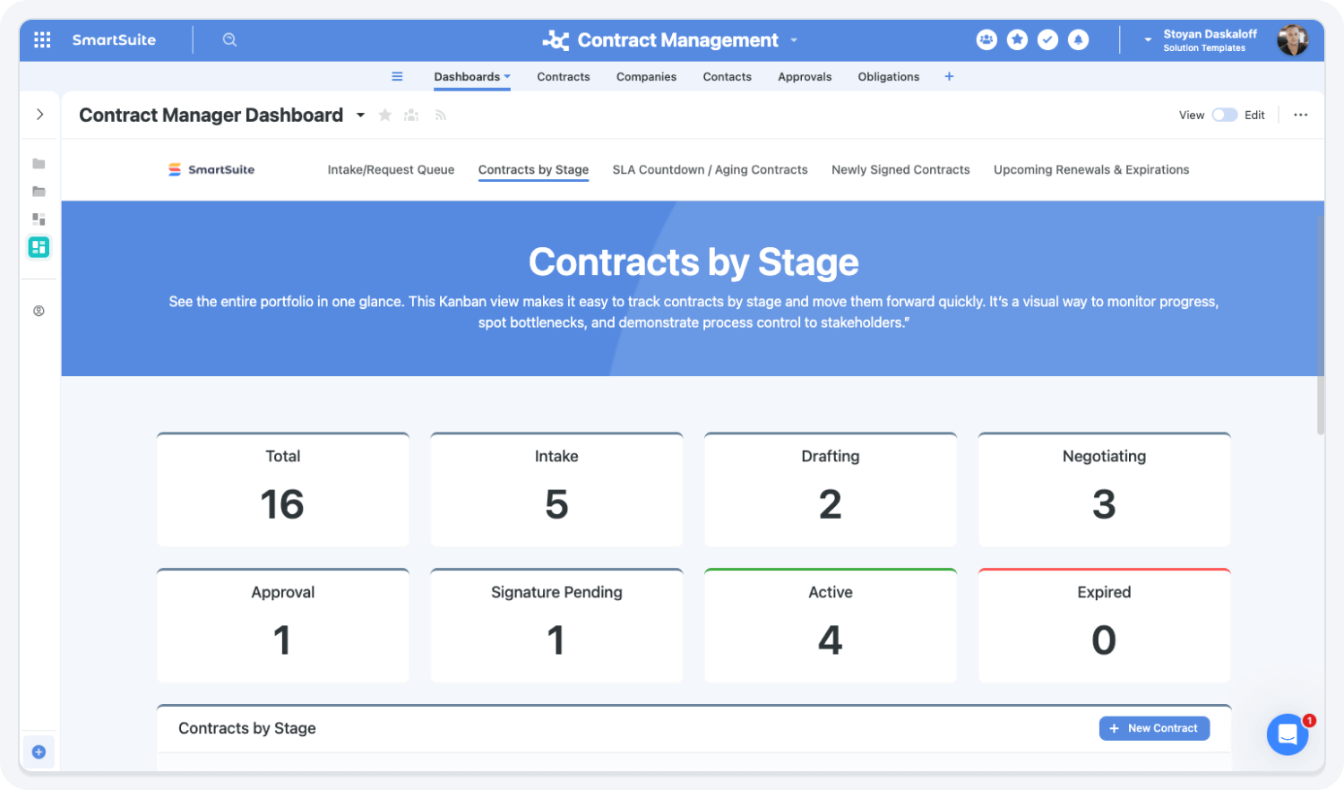 Experience how SmartSuite modernizes sourcing, vendor onboarding, contracting, and renewal governance in one unified workspace.