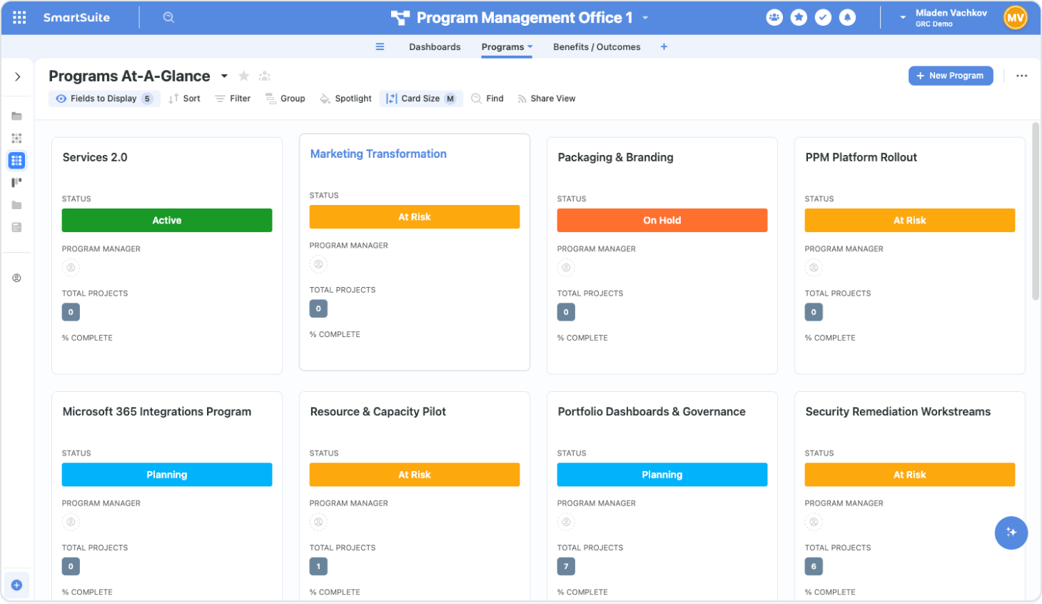 SmartSuite brings enterprise-grade program management with consumer-grade usability. Choose the rollout path that fits your program structure today—and expand as initiatives, workstreams, and governance needs grow.