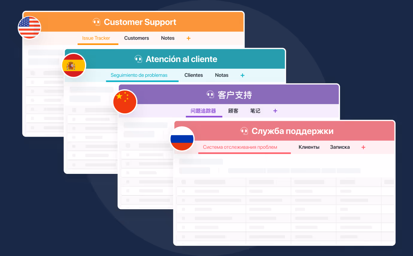 Today’s teams span time zones, countries, and customers. SmartSuite is built to keep work moving—without forcing everyone to work in the same language or format.